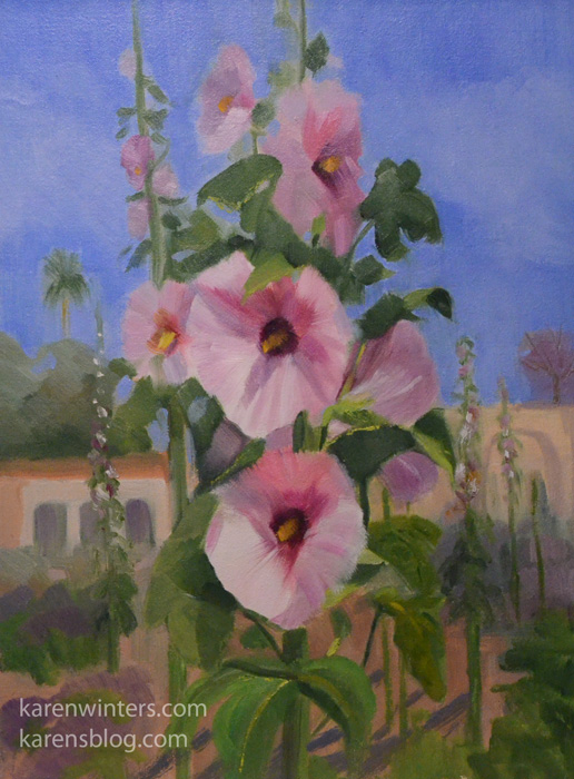 Capistrano hollyhock flowers painting