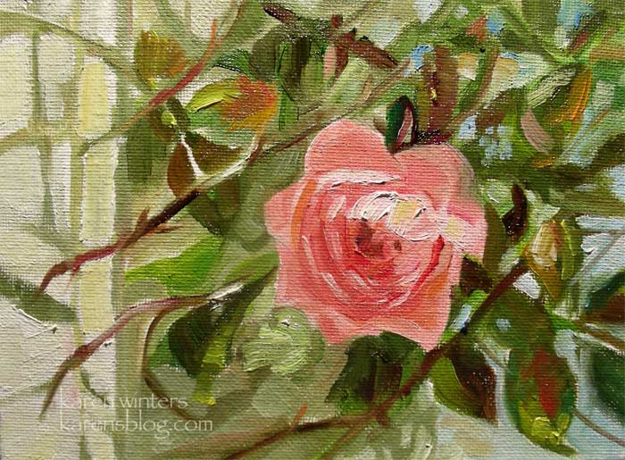 climbing pink rose huntington gardens oil painting 5 x 7 inches