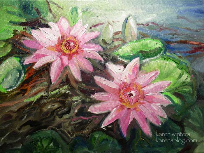 pink waterlilies lotus flower oil painting